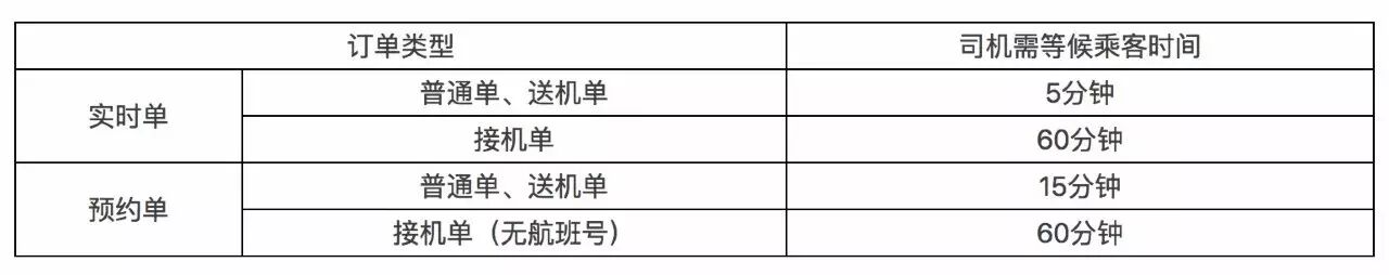 ➤ 司机按时到达约定地点,但等候乘客时间小于规定时间就取消,无论实时单还是预约单,一律都算司机有责。关于司机等候时间: